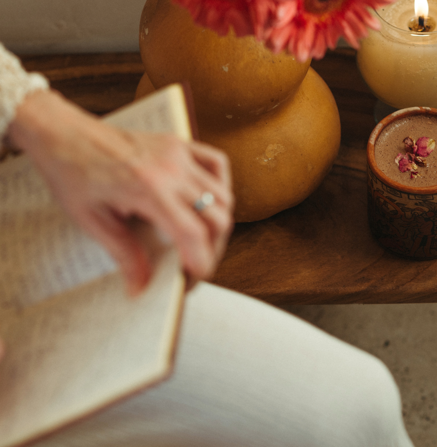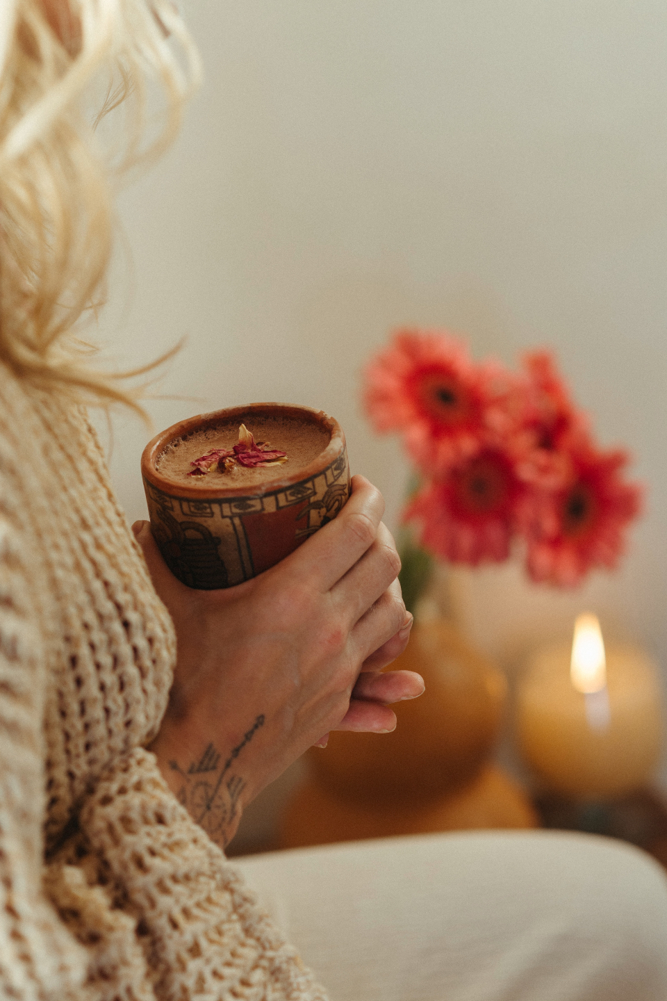- A cup of ceremonial cacao or herbal infusion
